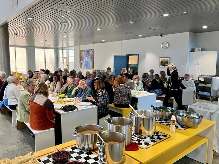 Det var stort oppmøte og god stemning. Før foredrag og underholdning, ble det servert middag, kaffe og kaker. Viltgryte med salat og foccacia, som alltid tilberedt av Reidun. Heldige er vi som har vår egen kokk blant medlemmene våre. Loddsalg hører med, og det ble trukket og delt ut mange fine premier. Foredraget "En politisk historie fra husmorperioden" førte oss inn i en historisk utvikling fra «husmor» til «yrkeskvinne». Foredragsholderne; professor Eirinn Larsen og forsker Victoria Ciobanu Austveg, fortalte om egen forskning, og engasjerte publikum med et aktuelt og artig tema. Muntre trekkspilltoner fulgte oss gjennom kvelden, levert av Gyda Hesla med venner